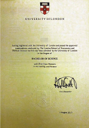 会计与金融理科学士学位证书