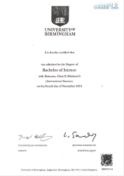 国际商务理科学士学位证书
